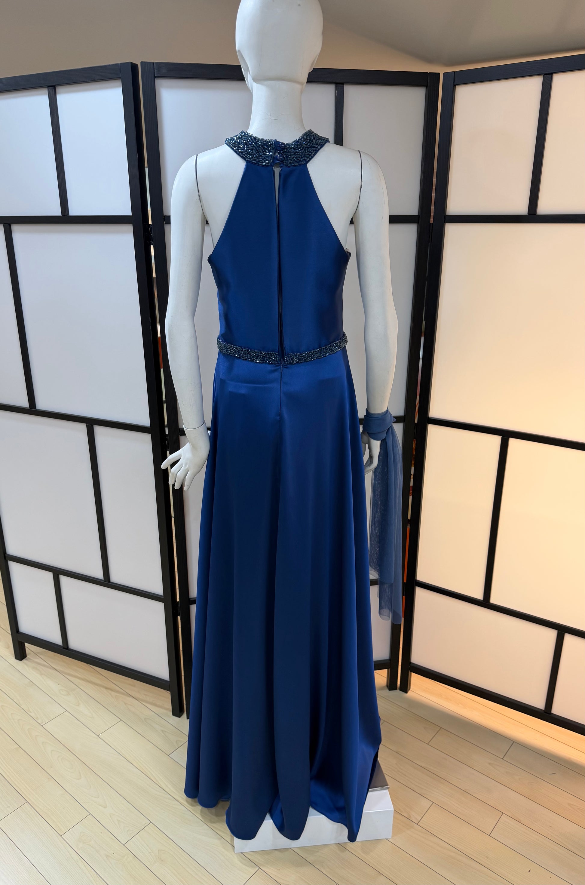 Elegante abito da cerimonia in blu, realizzato con tessuti pregiati che garantiscono comfort e movimento. La silhouette lunga valorizza la figura con un taglio raffinato e sofisticato, perfetto per occasioni speciali e eventi formali. I dettagli curati e la qualità costruttiva assicurano un capo versatile che si distingue per eleganza senza tempo. Ideale per chi ricerca un'opzione affidabile e di classe per le proprie celebrazioni.