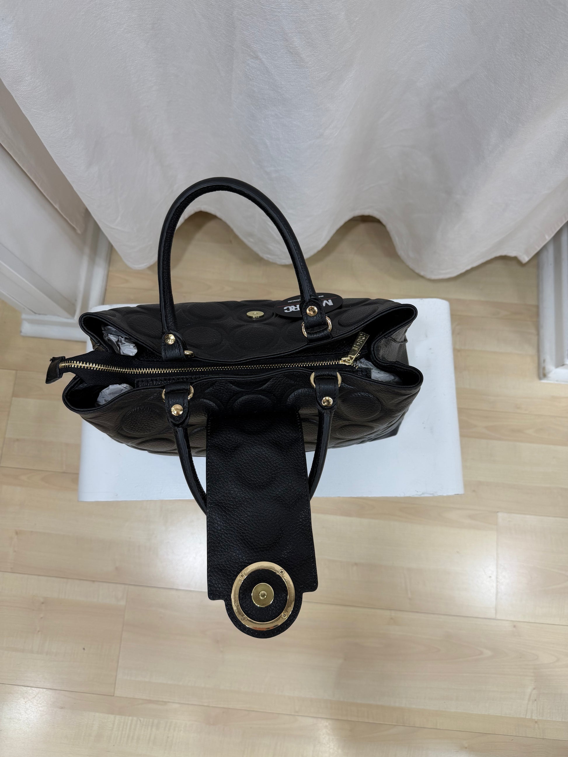 Borsa in pelle nera firmata Massimo Braccialini, realizzata con materiali di qualità superiore. Il design elegante e versatile si adatta perfettamente a qualsiasi occasione, dal lavoro agli eventi serali. La struttura ben definita offre ampio spazio interno con scomparti organizzati, mentre le finiture raffinate garantiscono durabilità nel tempo. Un accessorio essenziale che combina funzionalità e stile senza compromessi.