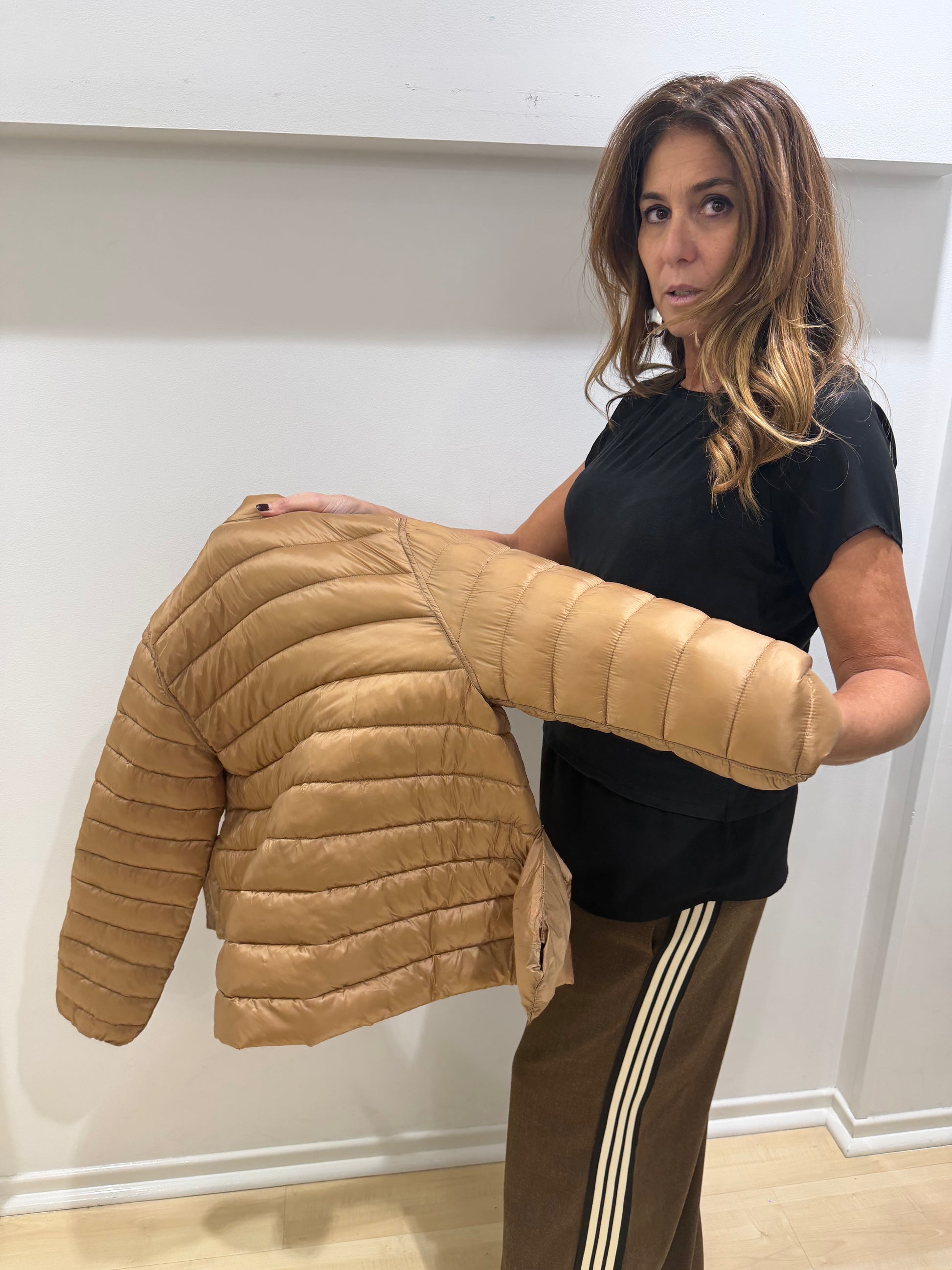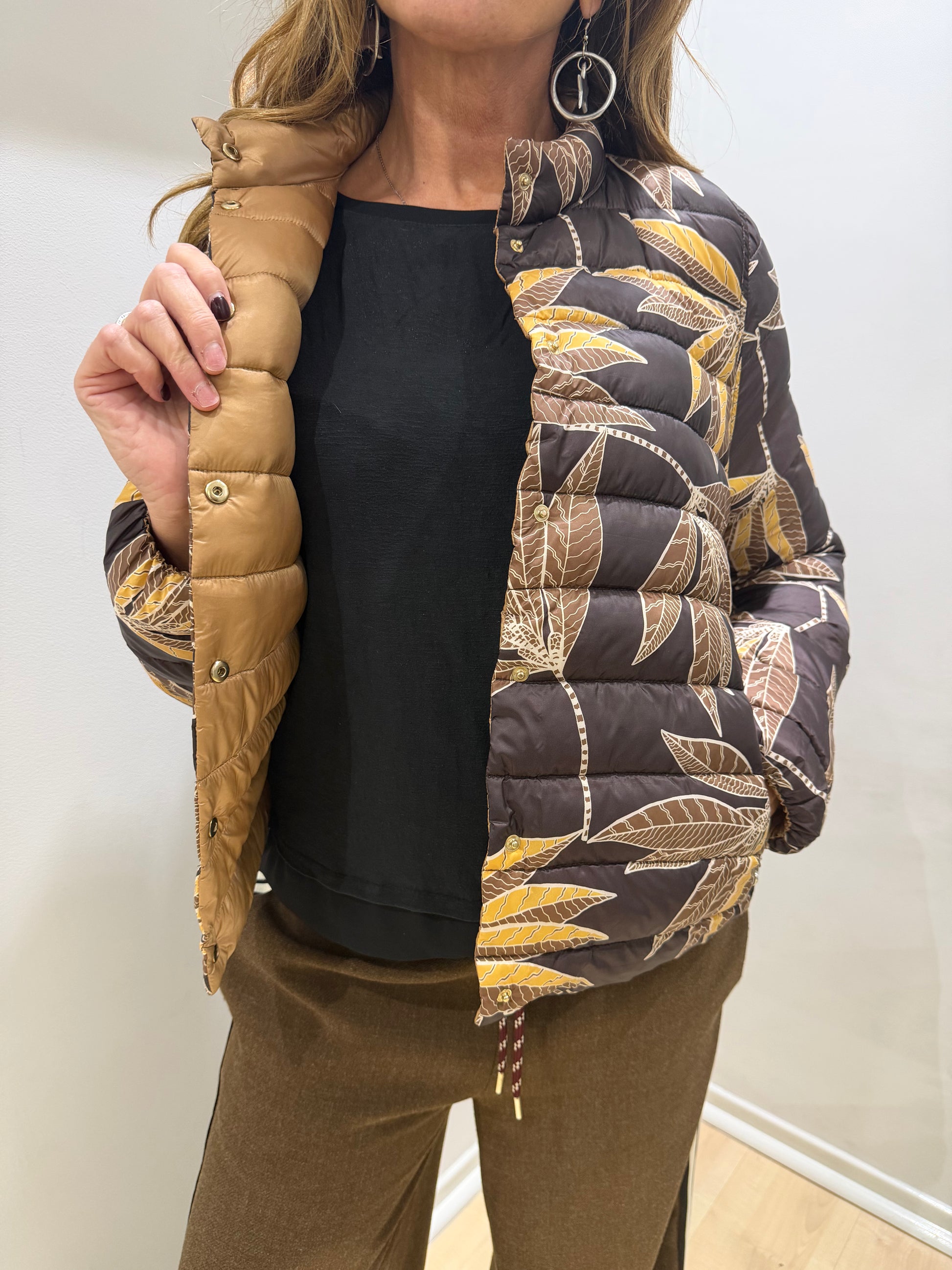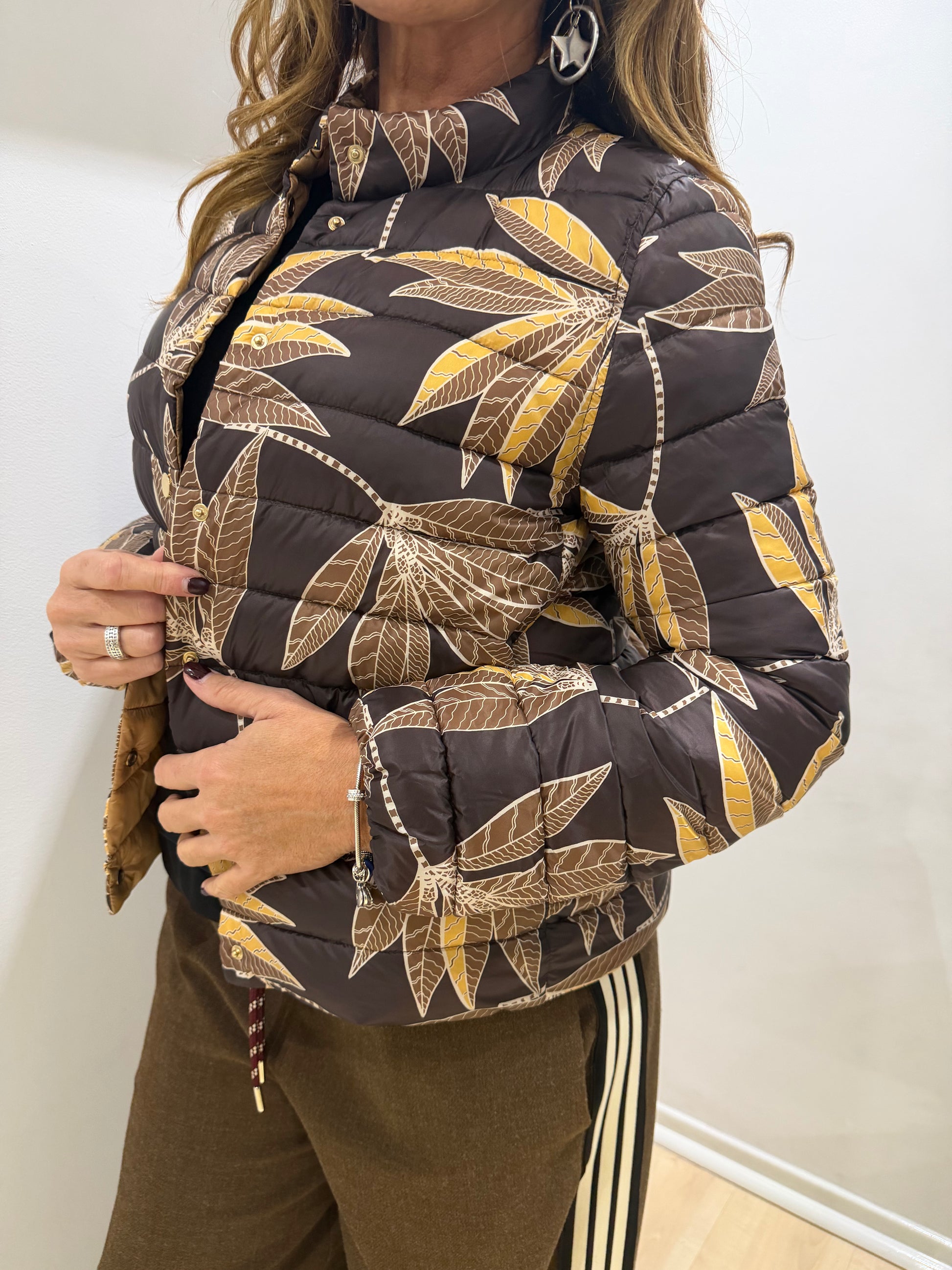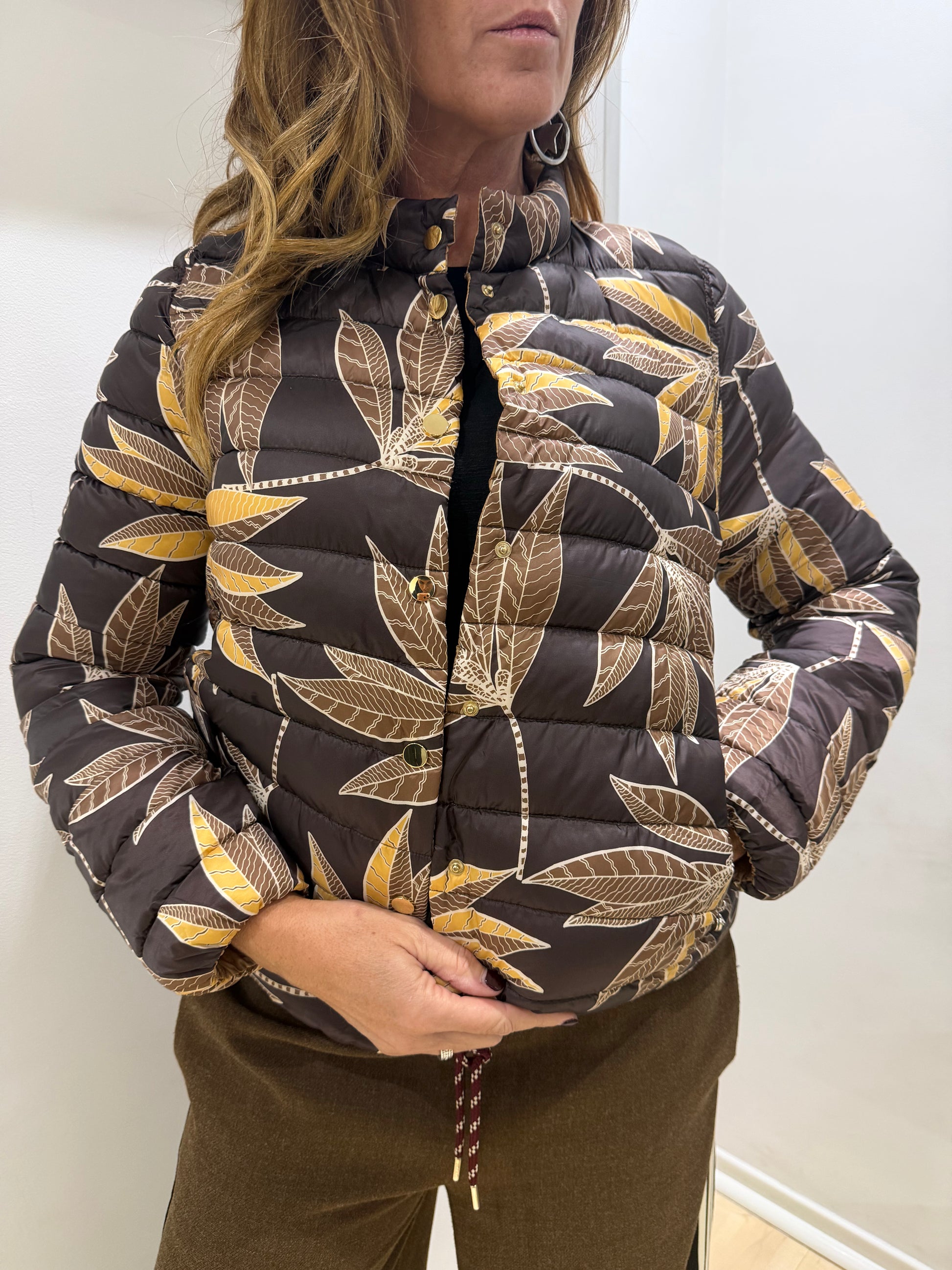 Giubbino floreale che unisce eleganza e versatilità. Il taglio corto valorizza la silhouette con proporzioni equilibrate, ideale per stratificare su abiti o indossare su magliette basic. La stampa floreale aggiunge movimento e carattere a qualsiasi outfit, mentre la qualità costruttiva Emme Marella garantisce comfort e durabilità nel tempo. Un pezzo essenziale per chi ricerca pezzi sofisticati con personalità.